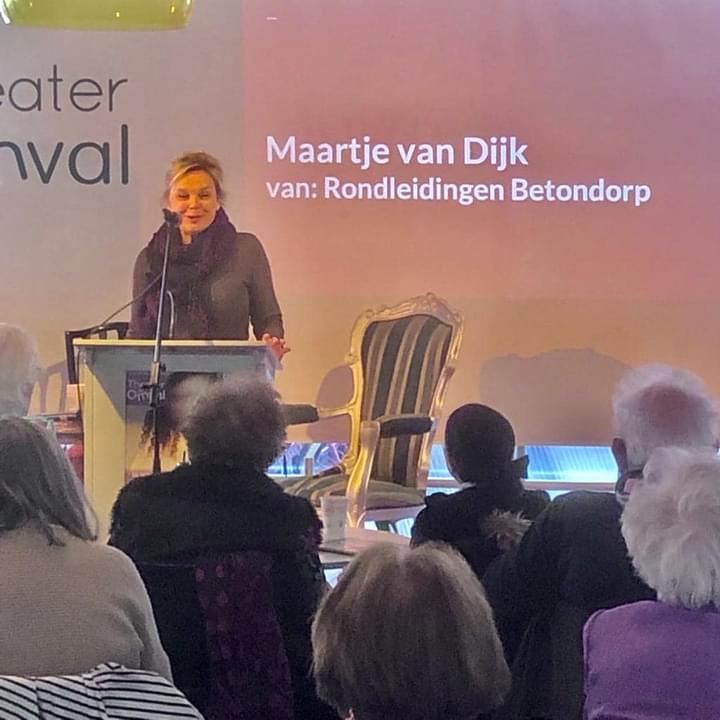 Geweldig trots deed Maartje de aftrap bij de presentatie van het themanummer Betondorp van het Tijdschrift Ons Amsterdam, met een kleine lezing over Bouwen in Beton. In de foyer van het theater de Omval in Diemen.